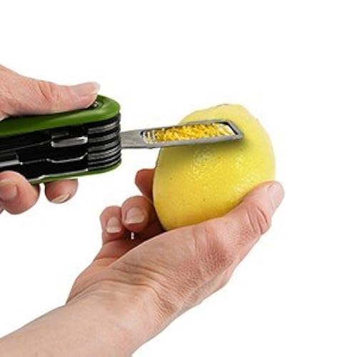 STAINLESS STEEL - Tools convert into knife, corer, huller, pitter, soft fruit peeler and zester. Reamer is integrated into the comfortable BPA free handle body.