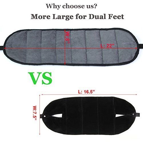 Foot pad size: 22"L x 8"W x 0.6"T (soft and comfortable), Belt length: 27"-55". Our footrest is big enough for dual feet works together, great fit for all the people. That is different from other brands