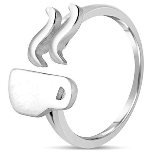 Coffee Lover Gift - Simple & Unique 925 Sterling Silver Coffee RingJewelry for Women