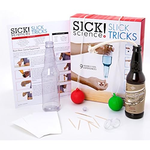 This Sick Science science kit is designed to get kids asking a question about how something works. Create a genie in a root beer bottles, make a soda bottle burp, step through an index card and more