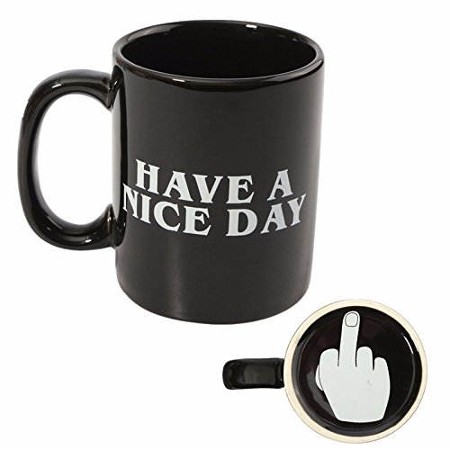 Unsuspecting ceramic mug will flip off everyone as you drink