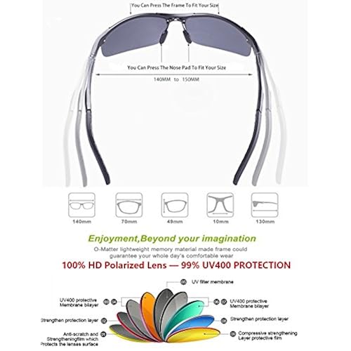 ALUMINUM MAGNESIUNM METAL ALLOY make frame Strong and light.The Sunglasses only 20g, You can hardly feel them on your face, but they are unbreakable. Best forMotorcycle.And Cycling Bicycle, Driving, Running, Fishing,Racing, Skiing and Climbing, Trekking Or Other Outdoor Activities Enthusiasts