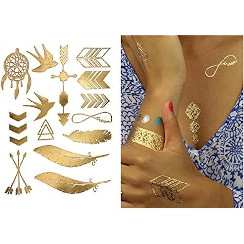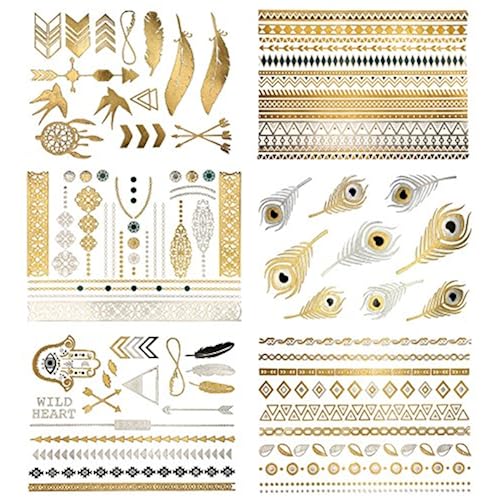 PREMIUM QUALITY - These metallic temporary tattoos will last several days and keep its flash & glitter look. Not to mention, theyre waterproof