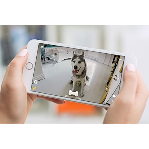 BUILT-IN TREAT DISPENSER: Toss treats to play and reward your pet - up to 6 feet. From the Petcube App, fling treats Angry-Birds style at variable distances, or schedule automatic treating. High capacity container holds up to 2 lb of treats