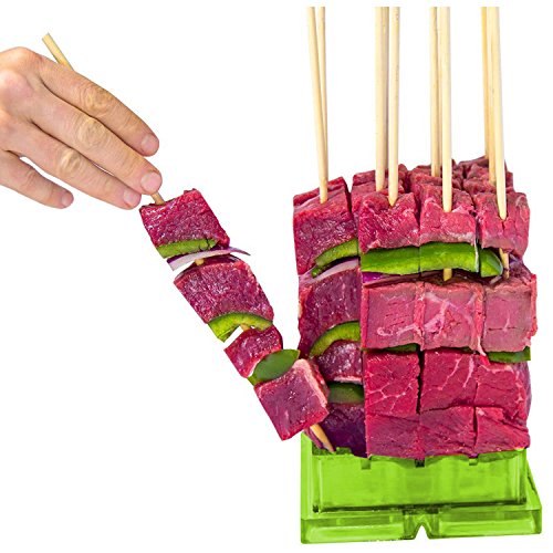 Clever Kebab 6 in 1 Kebab Cutting Tool with 32 Bamboo Skewers Green