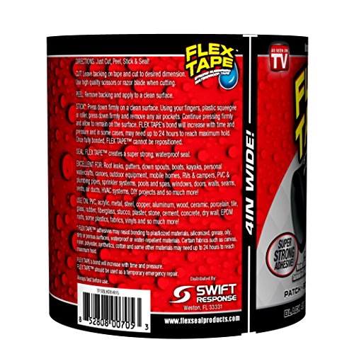 Flex Tape Rubberized Waterproof Tape, 4 x 5, Black
