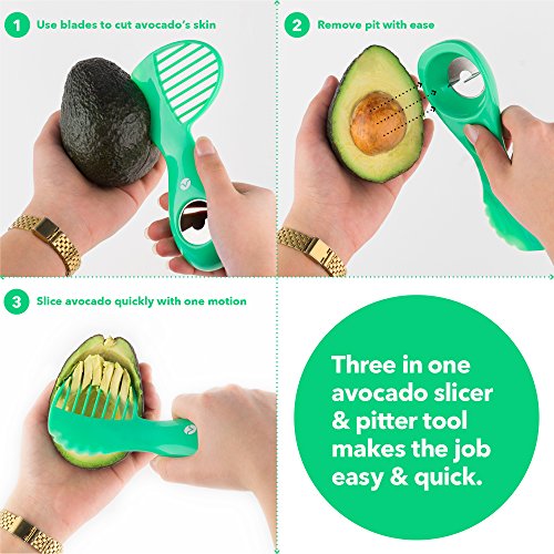 DISHWASHER SAFE - This 3 in 1 avocado slicer replaces unwieldy knives with a safe alternative cutter - use top rack of dishwasher for cleaning to maintain quality