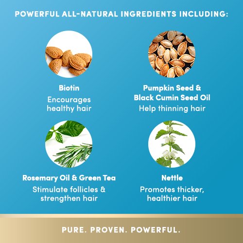 PREVENT HAIR THINNING NATURALLY. Stimulating blend of 17 Key Active Ingredients including Niacin, Biotin, Argan Oil, antioxidants and other natural ingredients that detoxify the scalp and encourage healthy hair, strength and resiliency.