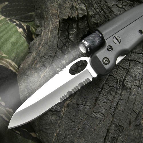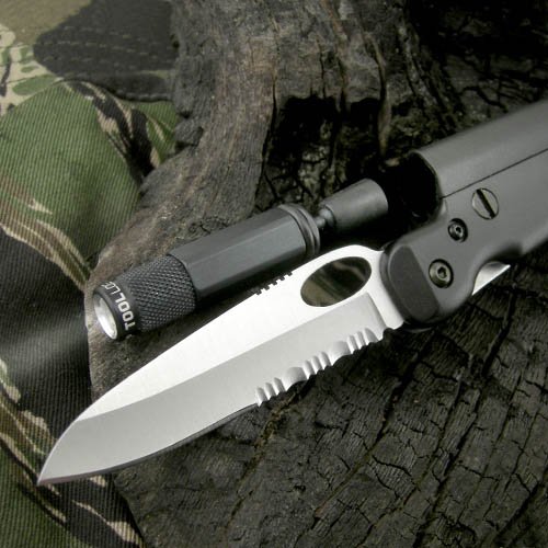 Tool Logic SL1 Tactical Folding 1-2 Serrated Knife With Hands-FreeMagnetic LED Flashlight
