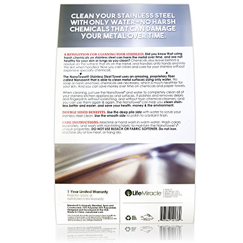THE NANO TOWELS® STAINLESS STEEL CLEANER REMOVES STREAKS, SMUDGES, AND FINGERPRINTS FROM ALL STAINLESS STEEL AND METAL SURFACES USING JUST WATER. Lift dirt, fingerprints, grease & grime like a magnet! The Nano Towels® Stainless can clean almost ANY metal, but WON'T SCRATCH! Amazing for kitchens, bathrooms, garages, or anyplace that you have metal to clean and shine.