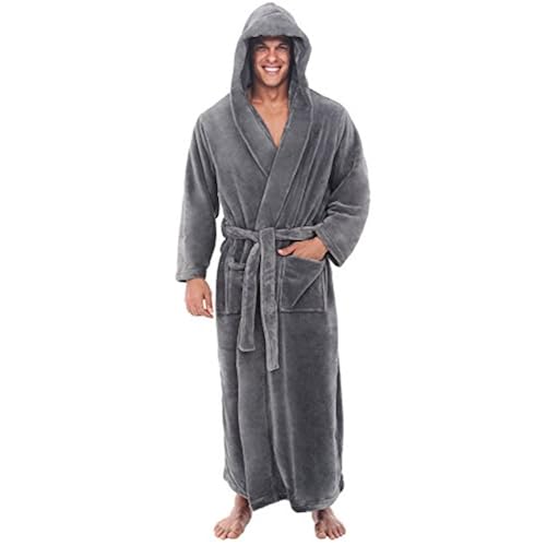 Alexander Del Rossa Mens Fleece Robe, Long Hooded Bathrobe