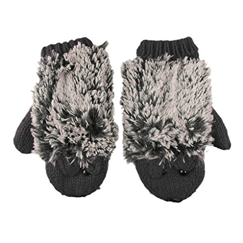 Fashion Korean Style Winter Warm Womens Wool Knitting Cute Hedgehog Cartoon Animal Faux Fur Wrist Mittens Gloves for Women Ladies Girls