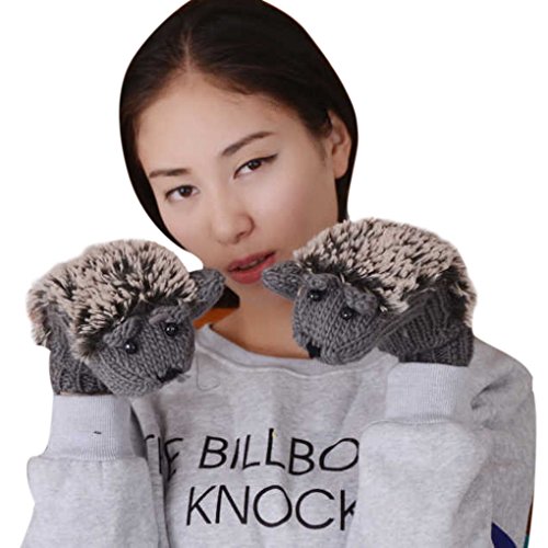 Cartoon hedgehog Women Girls Hand Warm Cute Animal Winter KnittedGloves Mitten