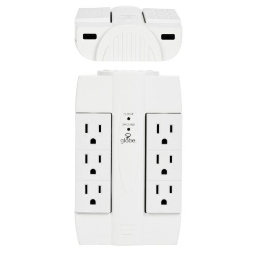 Globe Electric 6 Outlet Swivel Space Saving 2 USB Port Surge ProtectorWall Tap, Android,