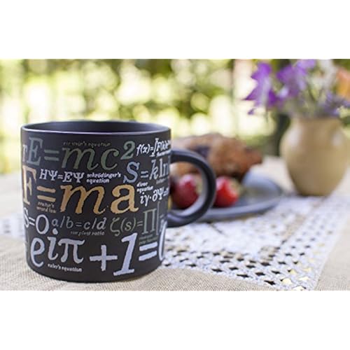You get gems such as Newton's Second Law, Planck's Equation, Hubble's Law, the Fourier Transform, and the mother of all equations, Einstein's General Theory of Relativity. The Math Mug is covered with formulas like this, making it a superb gift for any mathematician, physicist, or math teacher. All in all, it adds up to a pretty terrific coffee mug.Holds 12 oz. Dishwasher and microwave safe.