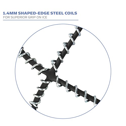 Made of high-strength, abrasion-resistant 1.4 mm stainless-steel coils and heavy-duty rubber; secured to shoes with durable rubber straps