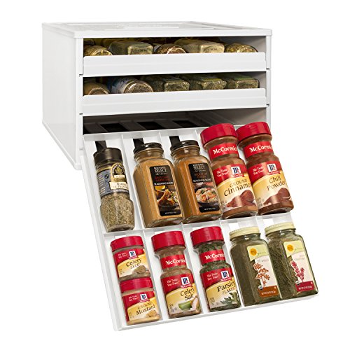 YouCopia Chefs Edition SpiceStack 30-Bottle Spice Organizer withUniversal Drawers, White