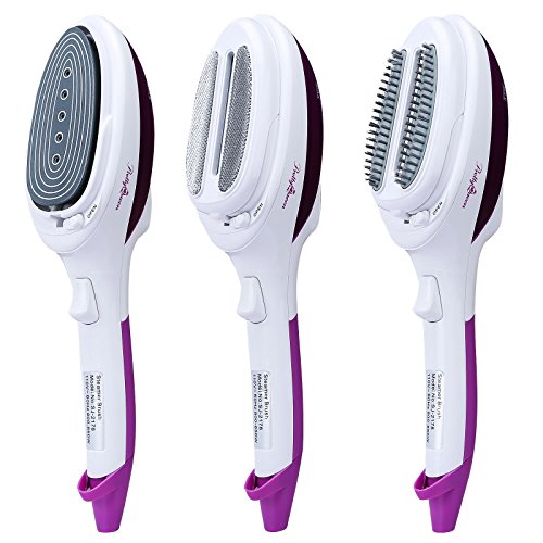 Features: No risk of damage to clothes and designed for ultimate safety. It is much safer with a ceramic base. With hooks can hang anywhere in order to save space. Incredible heating time of colorful handy garment steamer is only about 1 minute. Garment steamer gives you an astonishing 15 minutes of continuous steaming. It is easy, efficient and fast heat-up for clothes.