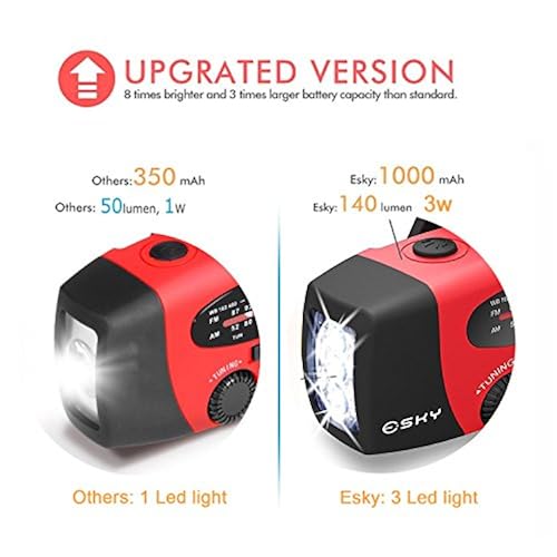 ![[Upgrade] Esky Emergency Radios Hand Crank Self Powered Solar FM/AM/NOAA Weather Radio with 3 LED Flashlight 1000mAh Power Bank Phone Charger (Red) Electronics, Portable Audio & Video, Radios, Shortwave Radios](https://images-na.ssl-images-amazon.com/images/I/51CuzJ1pmJL._US500_.jpg)