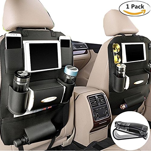 PRACTICAL - Made from High Grade Premium PU leather material-high-qualiy and it makes you car elegant! Car Backrests Protect with 8 Separate compartments provide quick access: for iPad mini (need a Ipad case ), 2 phones, 2 bottles, tissue box, umbrella,other