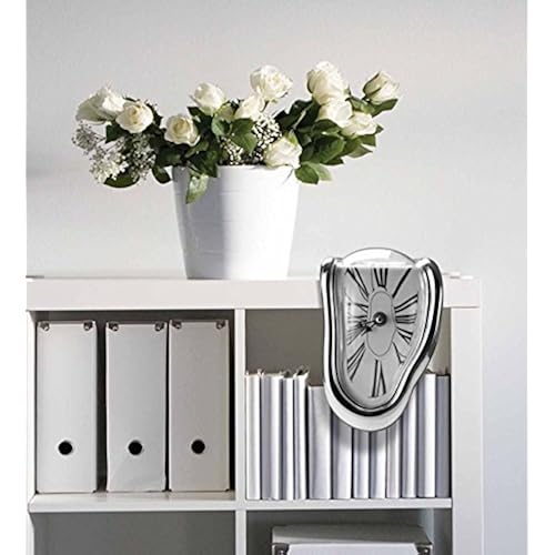 The melting clock illustrates that time is fluid in an entertaining way. The surreal "melted" surface can sit on a bookshelf or the edge of a desk and yet still function as a timepiece.