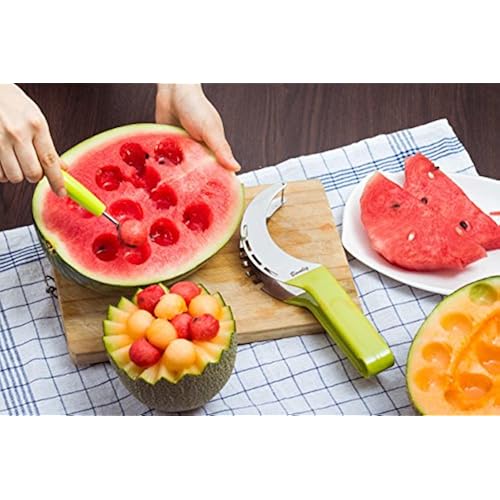 ?? VALUE PACK: The combo of watermelon slicer and Melon Baller with Fruit Carving Knife brings together the essential tools to slice, cut , dice, ball, carve and scoop fruits in a single package.Top favorite kitchen tool/gadget for your home.