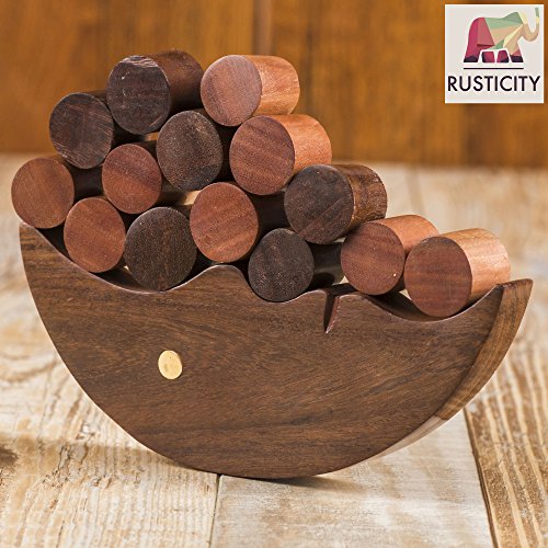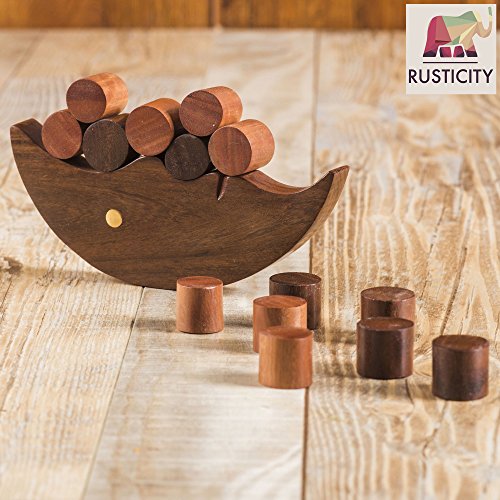 Rusticity Wood Balancing Game with Moon Shaped Disk and Cylinders for