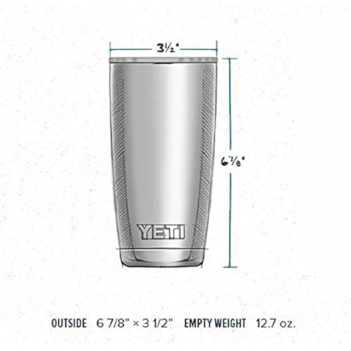 The YETI 20 oz Rambler Tumbler stands 6 7/8 in high and has a lip diameter of 3 1/2 in. All YETI Tumblers are sized to fit in standard sized cup holders