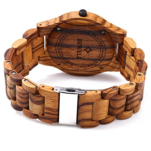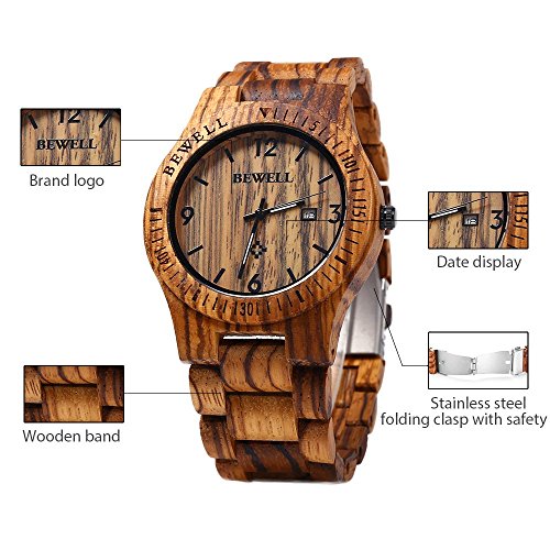 Bewell W086B Mens Wooden Watch Analog Quartz Lightweight Handmade Wood