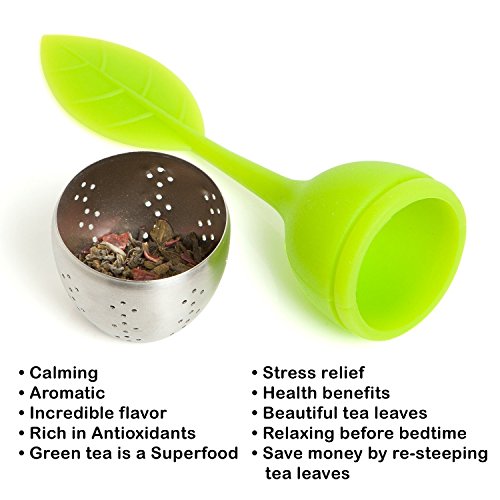 Set of 2 Tea Infuser Leaf Strainer Handle with Steel Ball Silicone eaf Lid (Green) M-HG038 By Xcellent Global